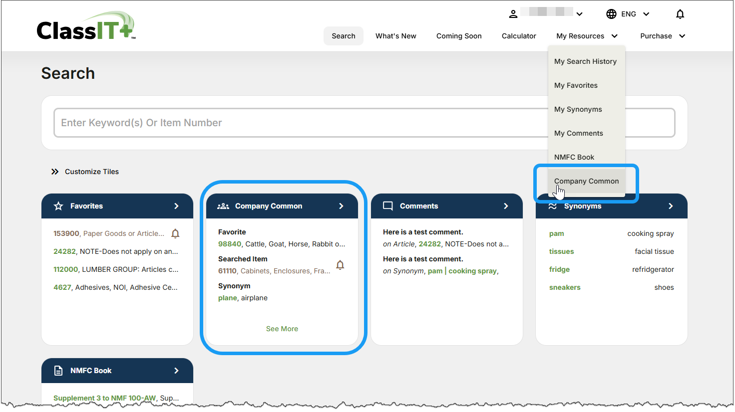 | To use the Company Common, your Company Admin must first enable this feature. See Exploring the ClassIT+ Company Settings for more information. |