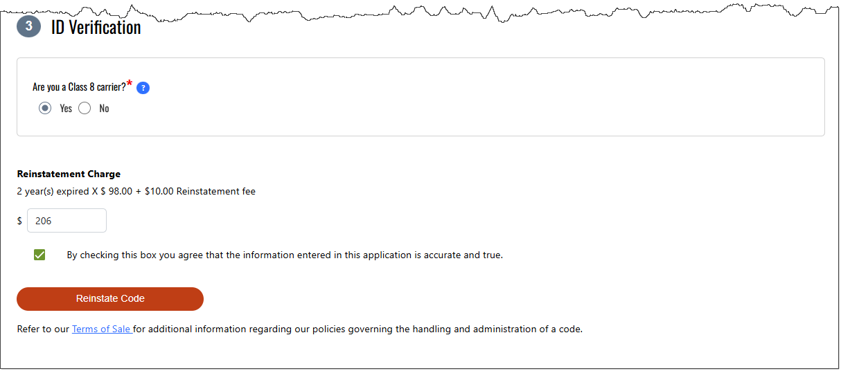 Review the information and then click to complete your Reinstate Code transaction. Once the transaction is complete, an Order Confirmation screen will open with options to download or email the reinstated SCAC certificate. You can also download or email a receipt.