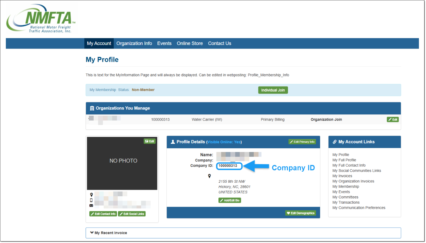 - Log in to myNMFTA and click My Account. The My Profile page opens.